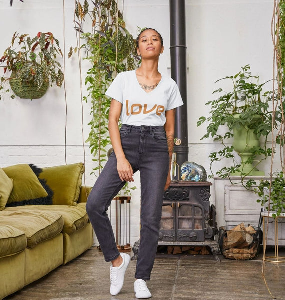 Certified organic cotton V Neck Tee, 155 gsm. Wash cool, hang dry. GM-free. Not tested on animals. Does not contain animal-derived products. Material made in a renewable energy-powered factory, audited for a wide range of social and sustainability criteria. Made to be remade - scan the QR code in the care label to send it back when worn out.