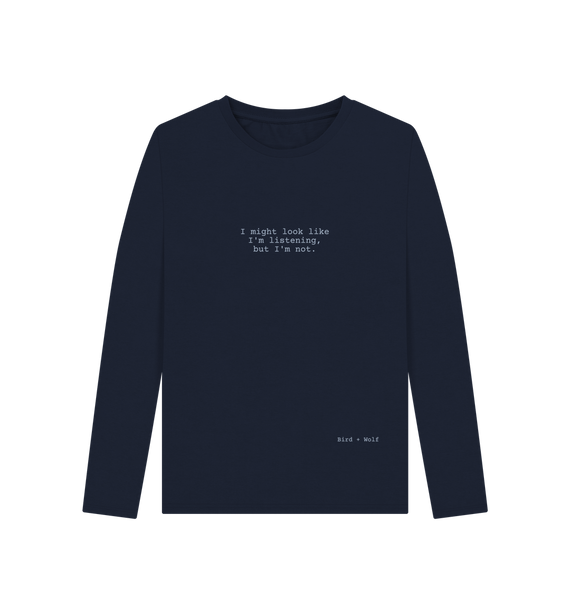 Navy Blue I Might Look Like I'm Listening Long Sleeve Tee