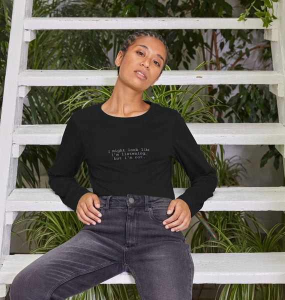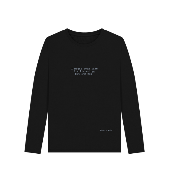 Black I Might Look Like I'm Listening Long Sleeve Tee